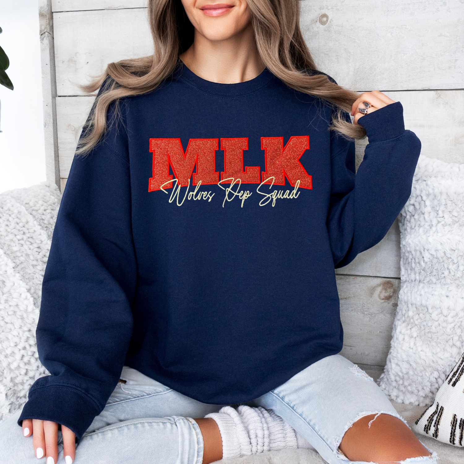 MLK Wolves Pep Squad Glitter Embroidery Crew Sweatshirt